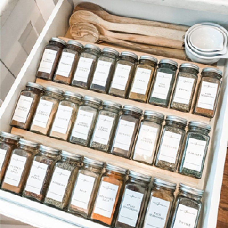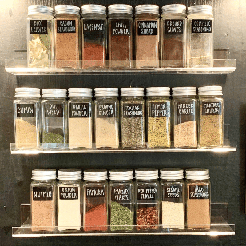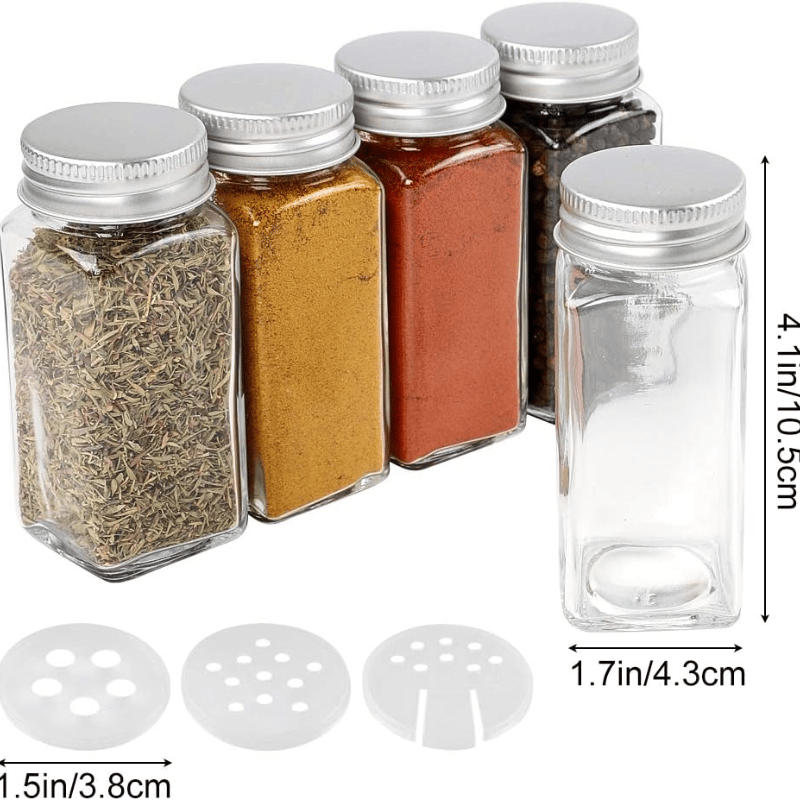 Transparente Gestaltung: Die transparenten Glasbehälter machen es einfach, den verbleibenden Gewürzstand zu überprüfen, sie bei Bedarf nachzufüllen und verschiedene Gewürze leicht zu erkennen.