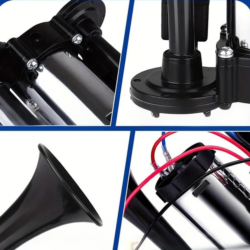 Zwillingsrohr-Integraldesign: Erzeugt einen stärkeren, volleren Ton im Vergleich zu Einzelhupe und verbessert die Hörbarkeit in lauter Umgebung.