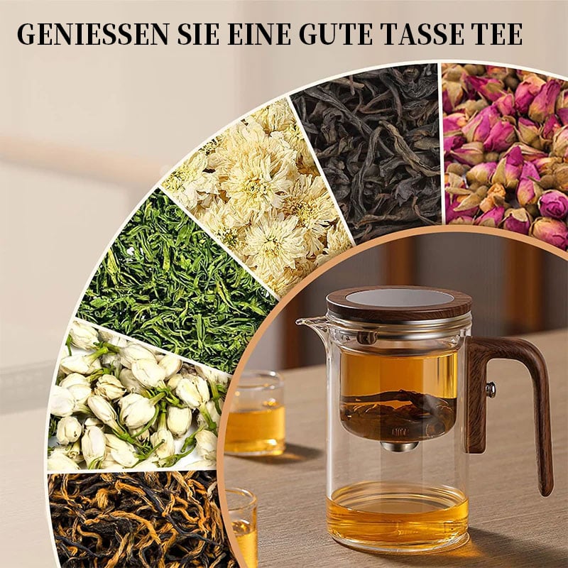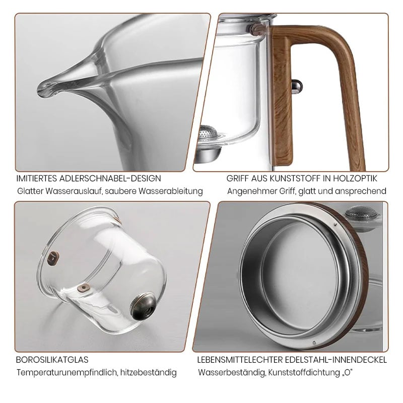 Einzigartiges Design: Ein Meisterwerk sowohl in puncto Stil als auch Funktionalität. Die Glasteekanne mit hoher Transparenz verfügt über ein innovatives Filtersystem, mit dem Sie Teeblätter mühelos vom Wasser trennen und die Brühstärke kontrollieren können.