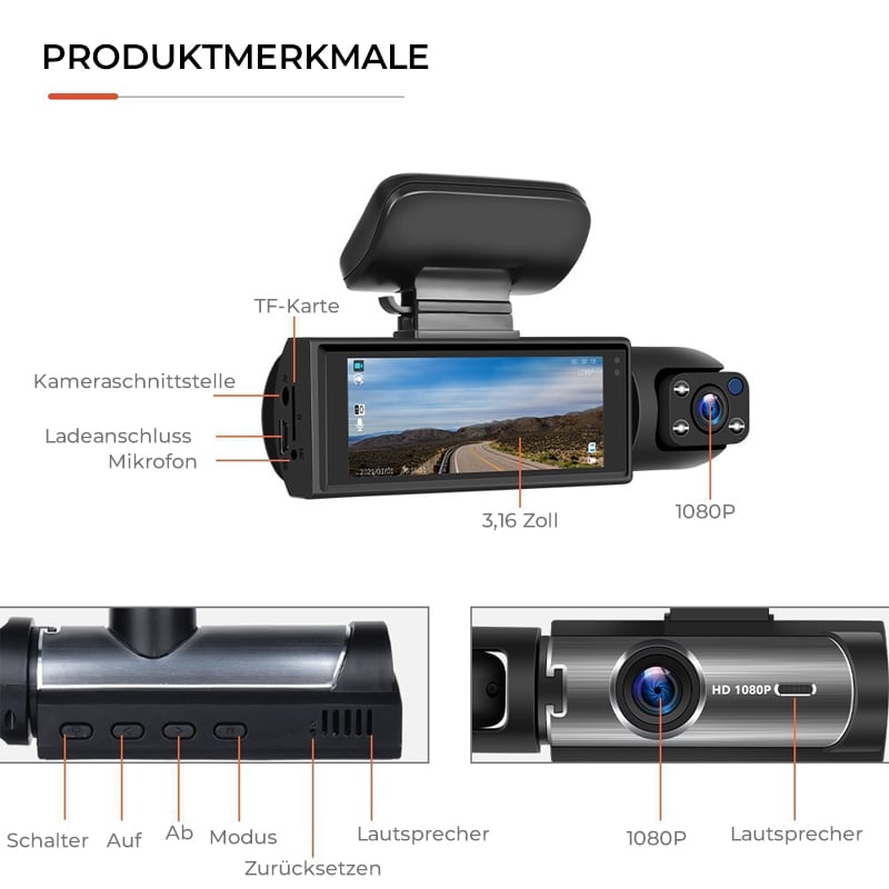 Ultra-Weitwinkel-Aufnahme: Ausgestattet mit einem Ultra-Weitwinkelobjektiv, deckt mehr von der Straße ab, reduziert tote Winkel und zeichnet die Bedingungen auf beiden Seiten klar auf.